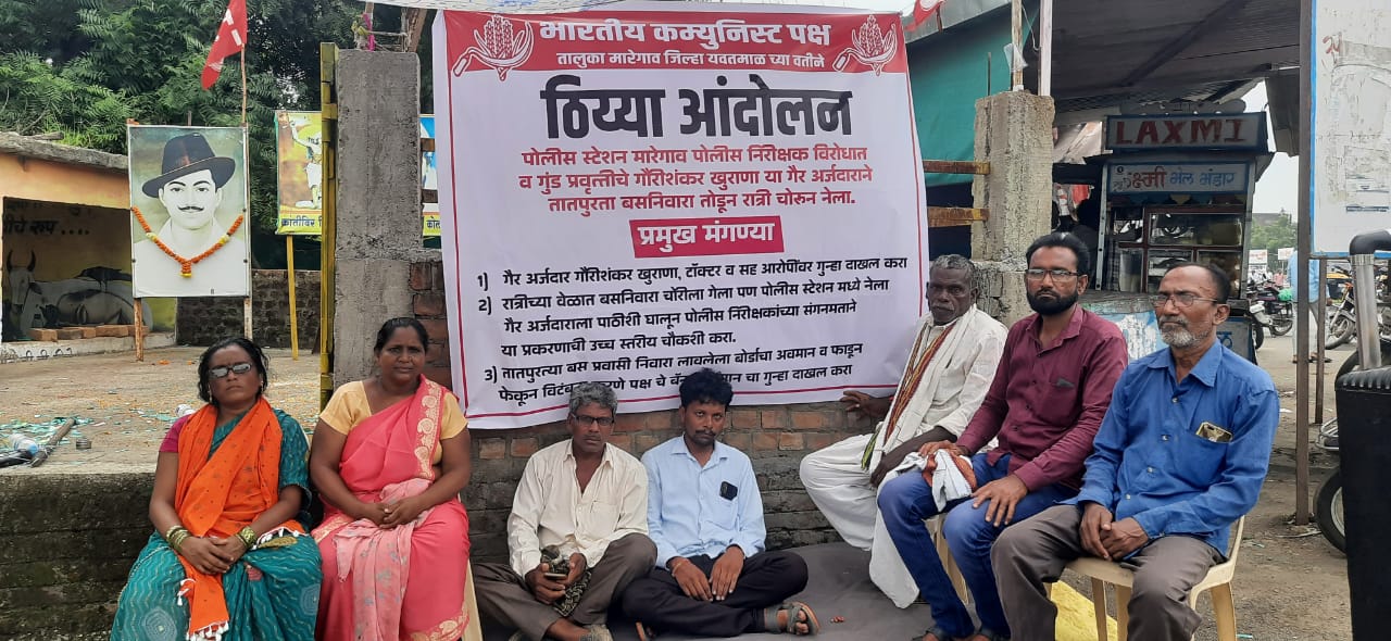 मारेगावात नविन बसथांबा तयार झाला.त्या शेजारी प्रवाशांसाठी भारतीय कम्युनिस्ट पक्षाने तात्पुरत्या स्वरूपाचा प्रवासी निवारा उभा केला.मात्र हा निवाराच गौरीशंकर खुराणा यांनी आता चोरल्याची तक्रार पक्षातर्फे पोलिसात करण्यात आली.मात्र ठाणेदार उलट खुराणा यांची पाठराखण करीत असल्याचा आरोप आहे. यामुळे आता ठाणेदार हटाव साठी भाकप ने एल्गार पुकारला आहे.आज उग्र स्वरूपात जेलभरो आंदोलन नेमका कोणते वळण घेते याकडे सर्वांचे लक्ष लागले आहे.