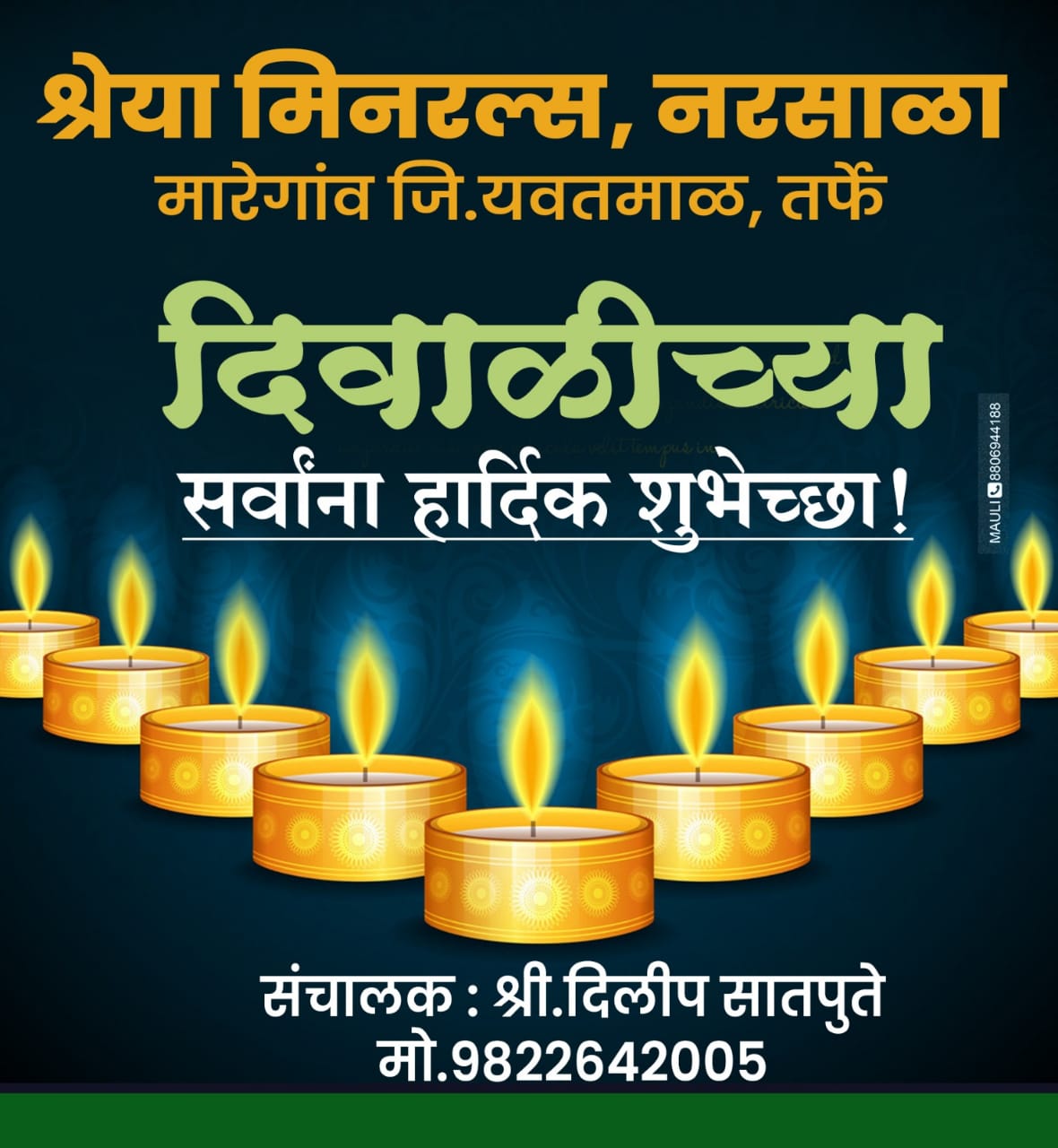 ही दिपावली आपणास तसेच आपल्या परिवारास आनंदाची ,भरभराटीची , सुख समृद्धीची जावो हीच ईश्वरचरणी प्रार्थना