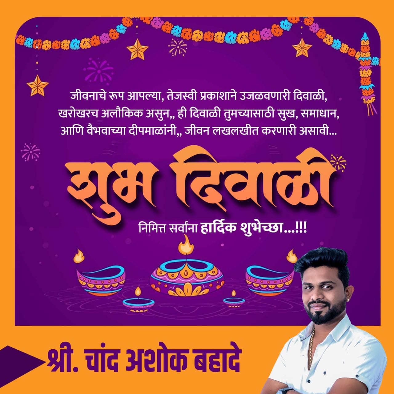 जीवनाचे रूप आपल्या, तेजस्वी प्रकाशाने उजळवणारी दिवाळी, खरोखरच अलौकिक असुन,, ही दिवाळी तुमच्यासाठी सुख, समाधान, आणि वैभवाच्या दीपमाळांनी,, जीवन लखलखीत करणारी असावी…