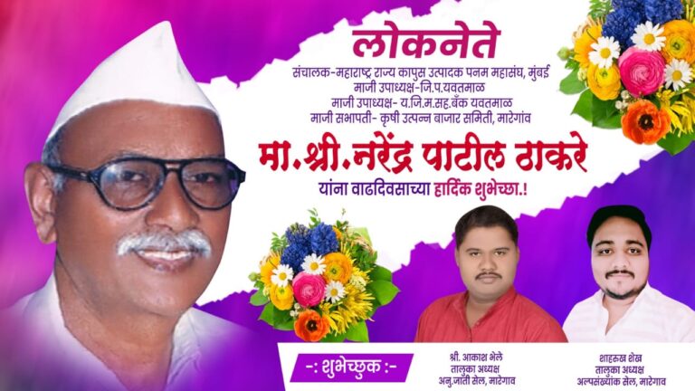 लोकनेते, आमचे मार्गदर्शक सन्माननीय श्री.नरेंद्र पाटील ठाकरे काकाजी संचालक महाराष्ट्र राज्य कापूस उत्पादन पणन महासंघ, मुंबई, माजी उपाध्यक्ष …