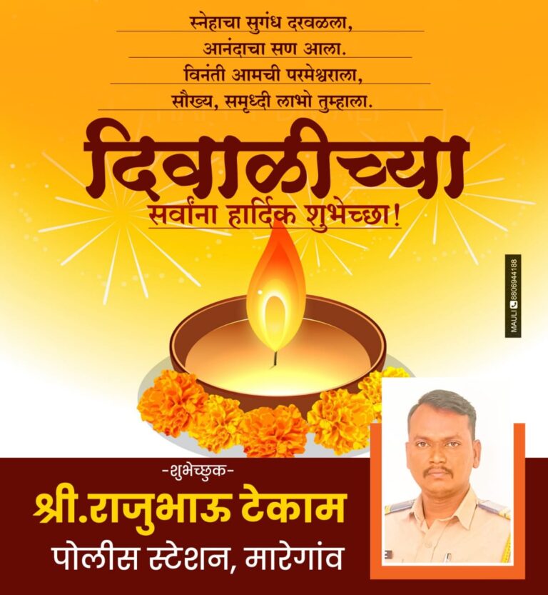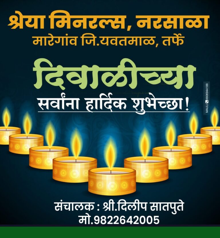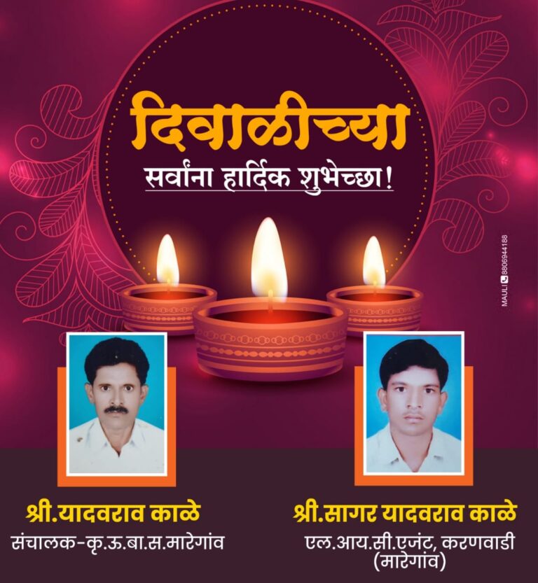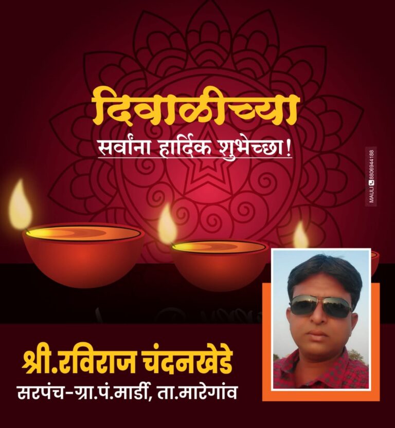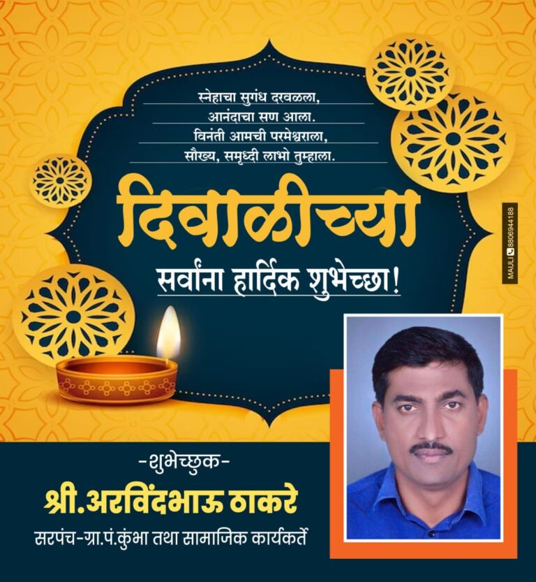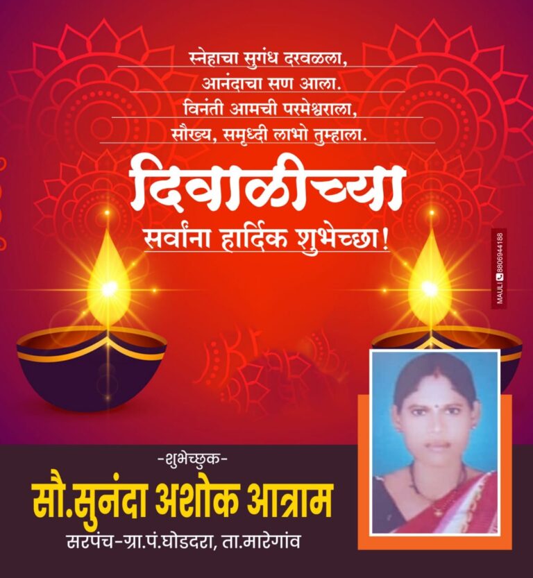 दिपावलीच्या मंगलमय हार्दिक शुभेच्छा . ही दिपावली आपणास तसेच आपल्या परिवारास आनंदाची ,भरभराटीची , सुख समृद्धीची जावो हीच ईश्वरचरणी …